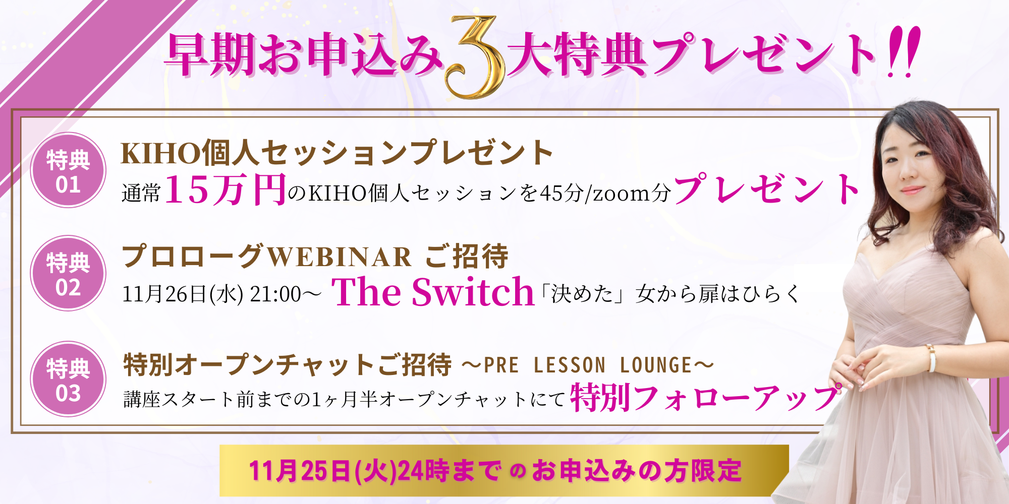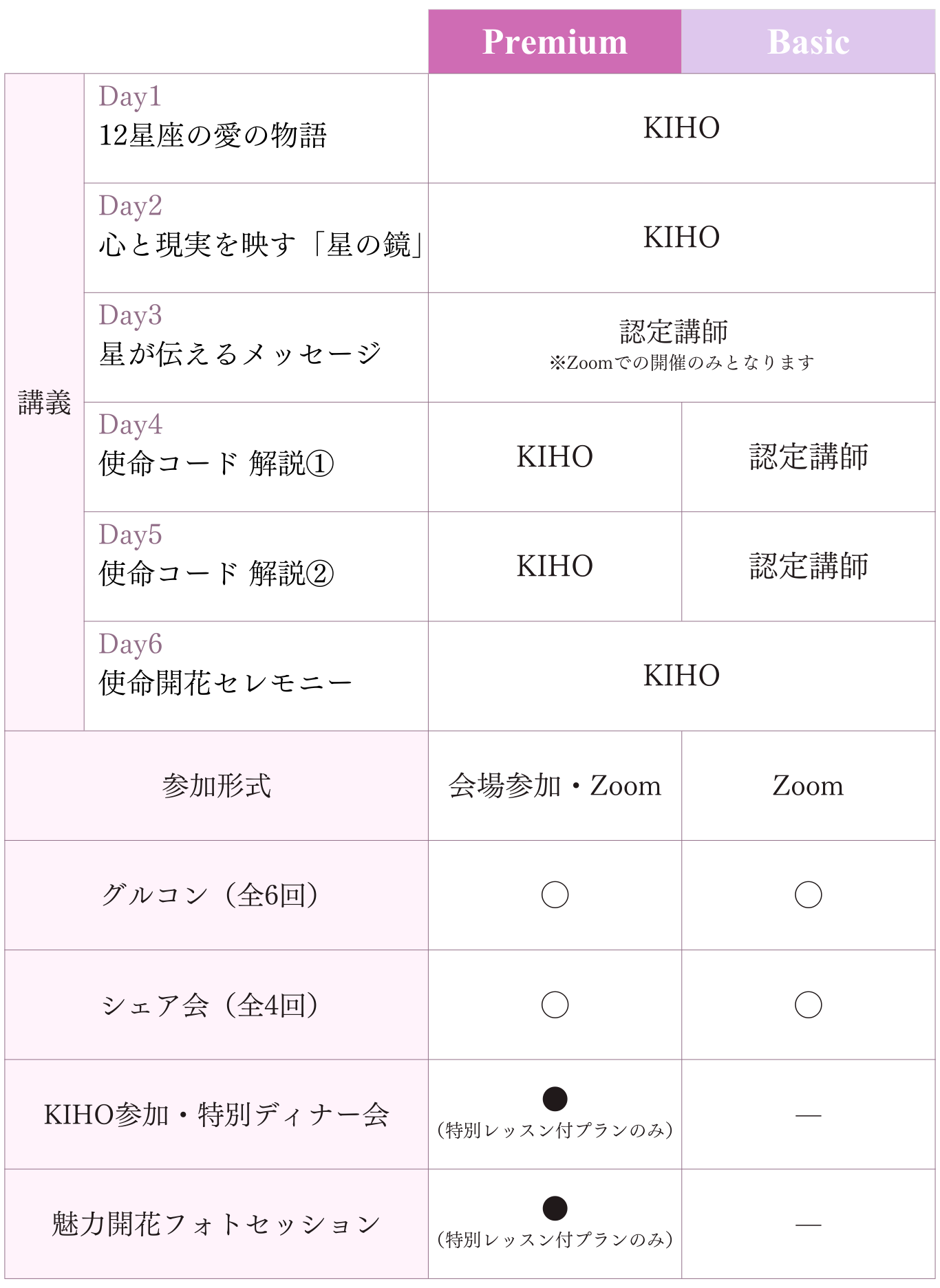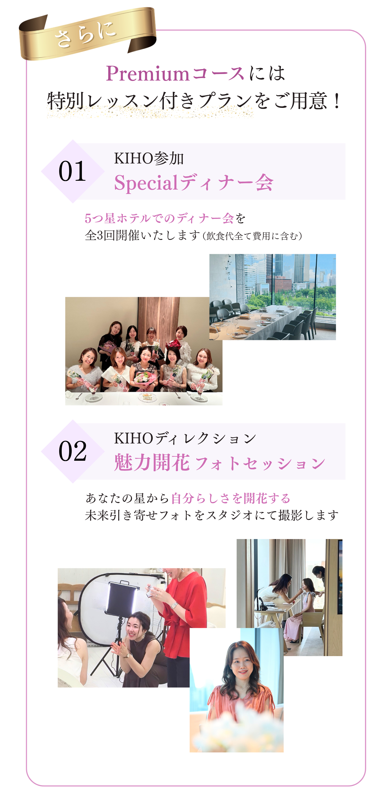 3月28日(土)都内にて KIHOディレクション 〈 星からの魅力開花フォトセッション 〉 ※時刻は10:00〜17:00の間を予定 Day1・4・6の講義後 KIHO参加のディナー会を開催 ※都内ホテルレストランを予定 |